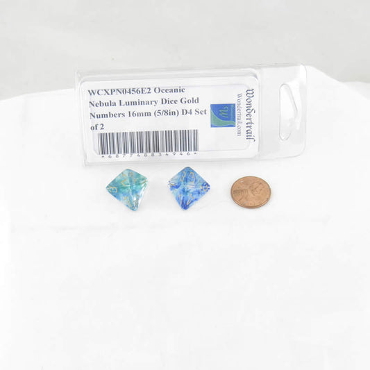 WCXPN0456E2 Oceanic Nebula Luminary Dice Gold Numbers 16mm (5/8in) D4 Set of 2