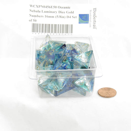 WCXPN0456E50 Oceanic Nebula Luminary Dice Gold Numbers 16mm (5/8in) D4 Set of 50
