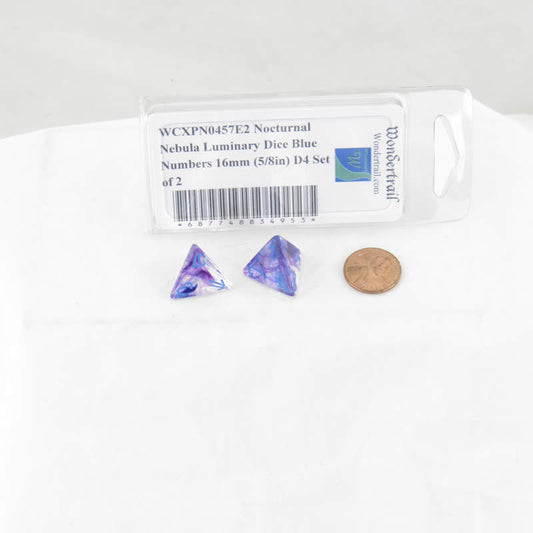 WCXPN0457E2 Nocturnal Nebula Luminary Dice Blue Numbers 16mm (5/8in) D4 Set of 2