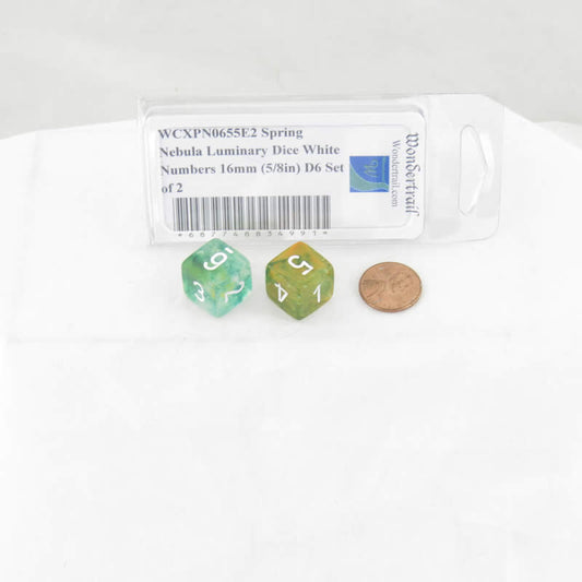 WCXPN0655E2 Spring Nebula Luminary Dice White Numbers 16mm (5/8in) D6 Set of 2