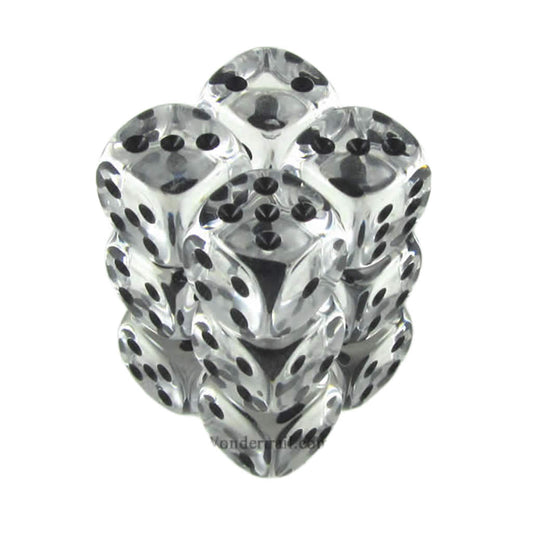 KOP08597 Clear Transparent Deluxe Dice Black Pips D6 16mm Pack of 12