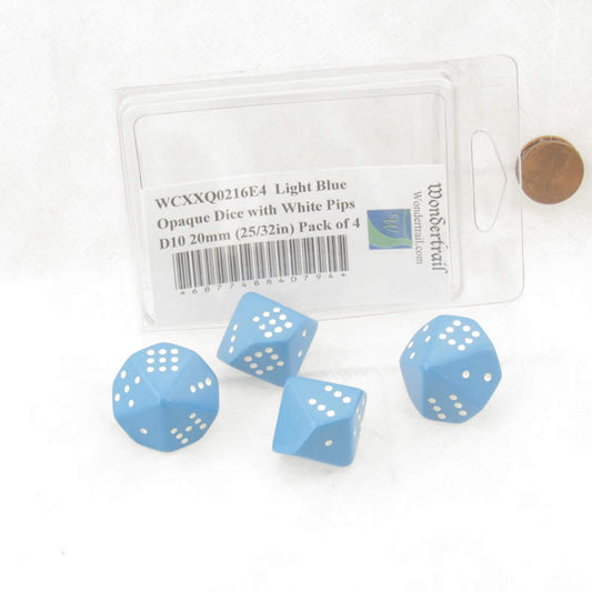 WCXXQ0216E4 Light Blue Opaque Dice with White Pips D10 20mm (25/32in) Pack of 4