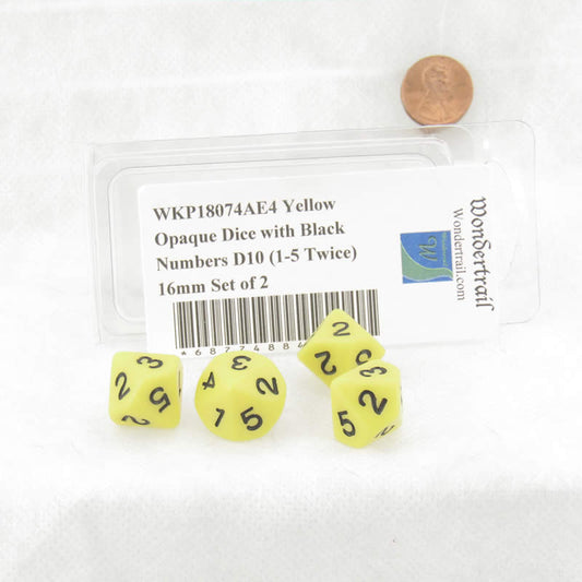 WKP18074AE4 Yellow Opaque Dice with Black Numbers D10 (1-5 Twice) 16mm Set of 4