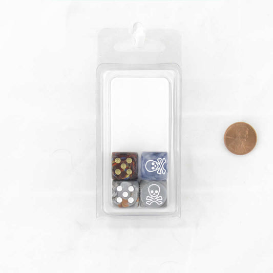 WCXCV0077E4 Skull and Crossbones Dice Assorted Colors with Pips 16mm D6 Pack of 4