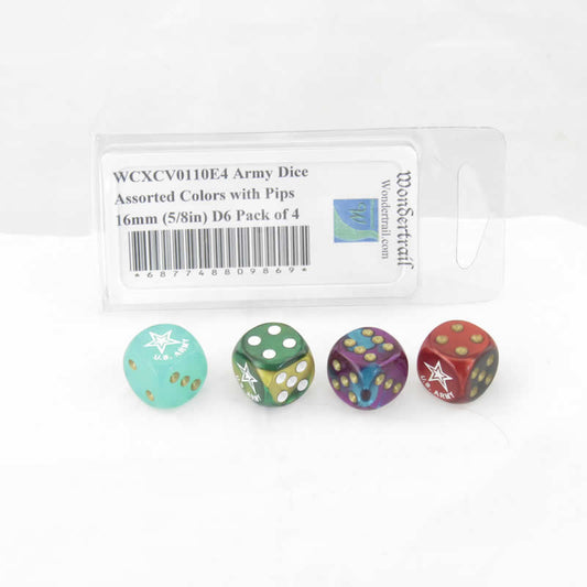 WCXCV0110E4 Army Dice Assorted Colors with Pips 16mm (5/8in) D6 Pack of 4