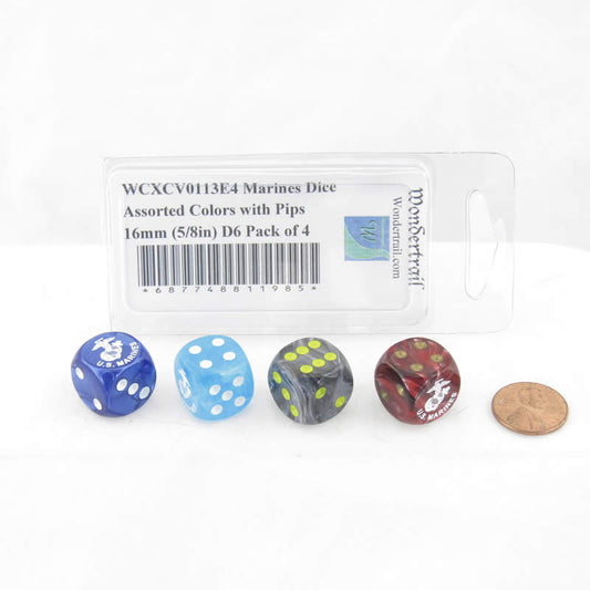 WCXCV0113E4 Marines Dice Assorted Colors with Pips 16mm (5/8in) D6 Pack of 4