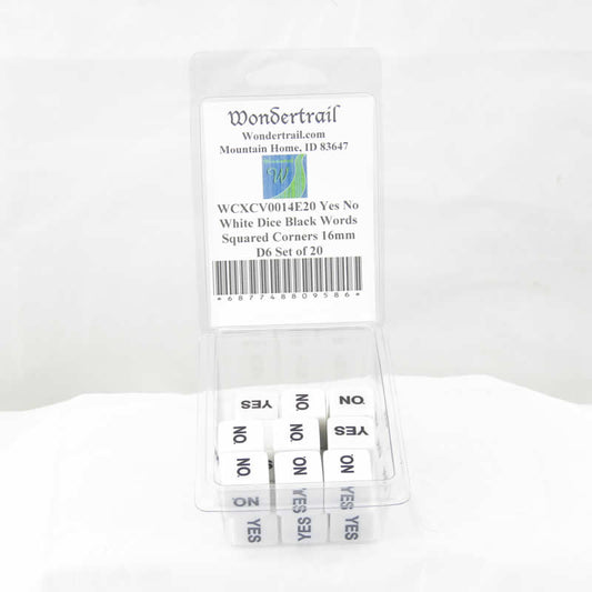 WCXCV0014E20 Yes No White Dice Black Words Squared Corners 16mm D6 Set of 20