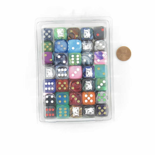 WCXCV0091E50 Nope (grumpy cat) Dice Assorted Colors Pips 16mm (5/8in) D6 Pack of 50