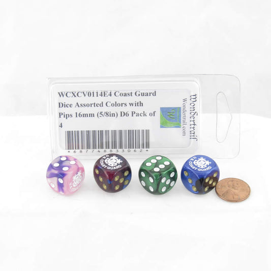 WCXCV0114E4 Coast Guard Dice Assorted Colors with Pips 16mm (5/8in) D6 Pack of 4
