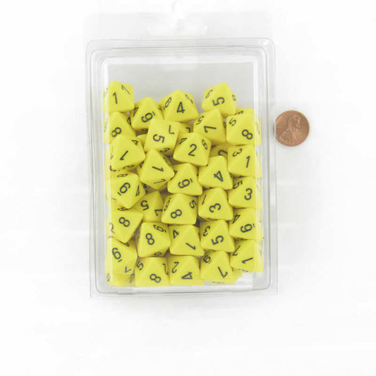 WCXPQ0802E50 Yellow Opaque Dice Black Numbers D8 Aprox 16mm (5/8in) Pack of 50