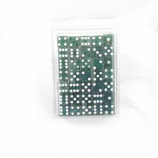 WKP01921E50 Green Glitter Dice White Pips Squared Corners D6 16mm Pack of 50