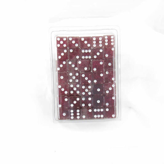 WKP01922E50 Purple Glitter Dice White Pips Squared Corners D6 16mm Pack of 50