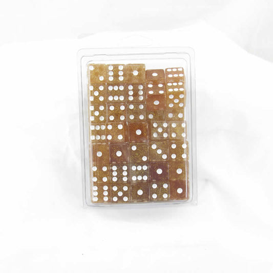 WKP01924E50 Yellow Glitter Dice White Pips Squared Corners D6 16mm Pack of 50