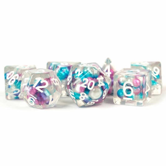 MET693 Gradient Pearl Dice with Gold Numbers Resin 16mm (5/8in) 7 Dice Set