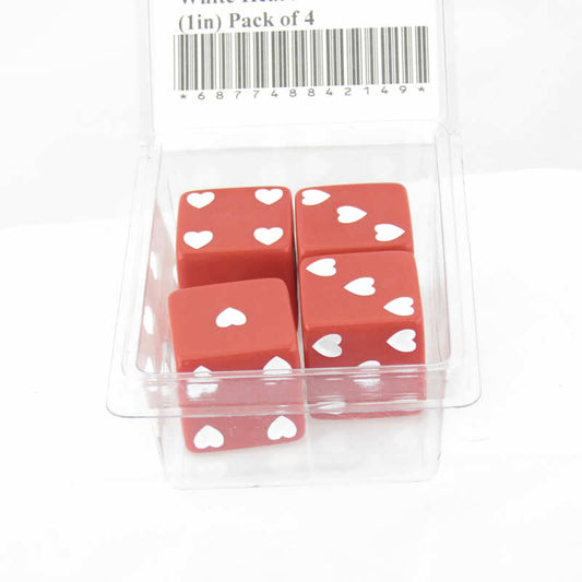 WKP03928E4 Red Sweetheart Dice with White Hearts D6 25mm (1in) Pack of 4