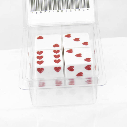 WKP03929E4 White Sweetheart Dice with Red Hearts D6 25mm (1in) Pack of 4
