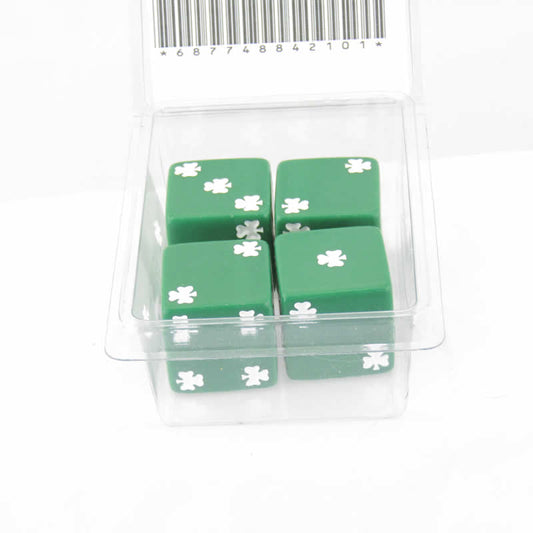 WKP03937E4 Green Lucky Dice with White Clovers D6 25mm (1in) Pack of 4