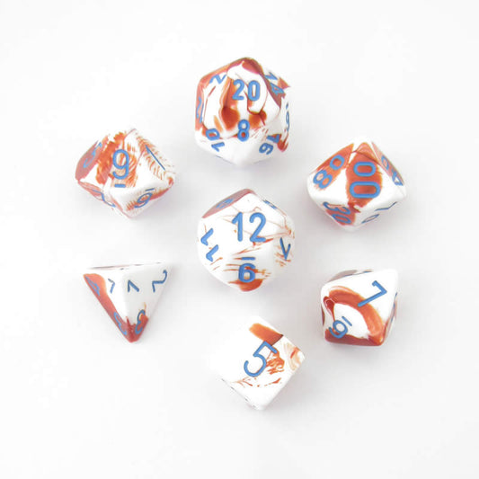 KOP19416 Sunset Layered Dice White Colored Numbers 16mm Set of 7