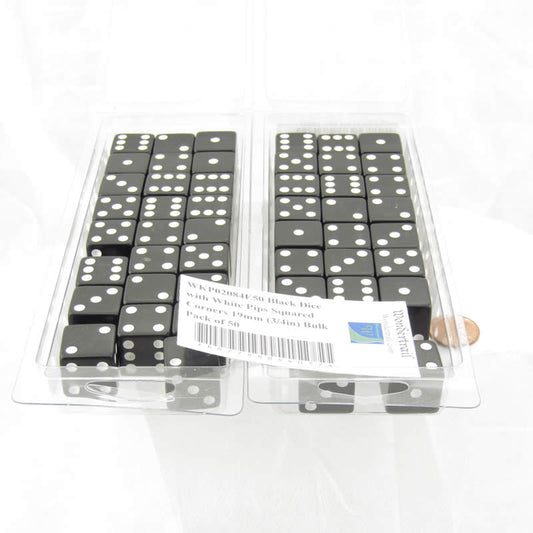 WKP02084E50 Black Dice with White Pips Squared Corners 19mm (3/4in) Bulk Pack of 50