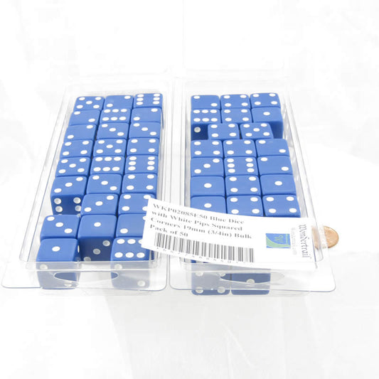 WKP02085E50 Blue Dice with White Pips Squared Corners 19mm (3/4in) Bulk Pack of 50