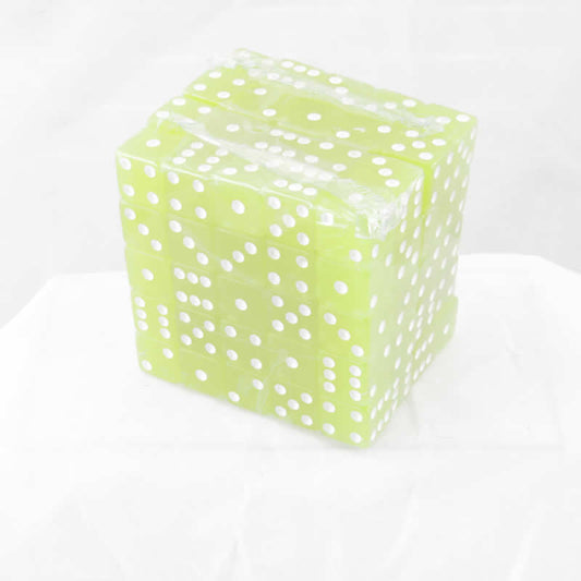 WKP01909E50 Lime Glow in the Dark Dice White Pips D6 16mm Pack of 50