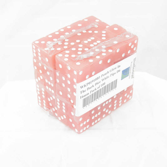 WKP01910B1 Peach Glow In The Dark Dice White Pips D6 16mm Pack of 100