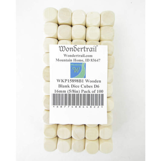 WKP15898B1 Wooden Blank Dice Cubes D6 16mm (5/8in) Pack of 100