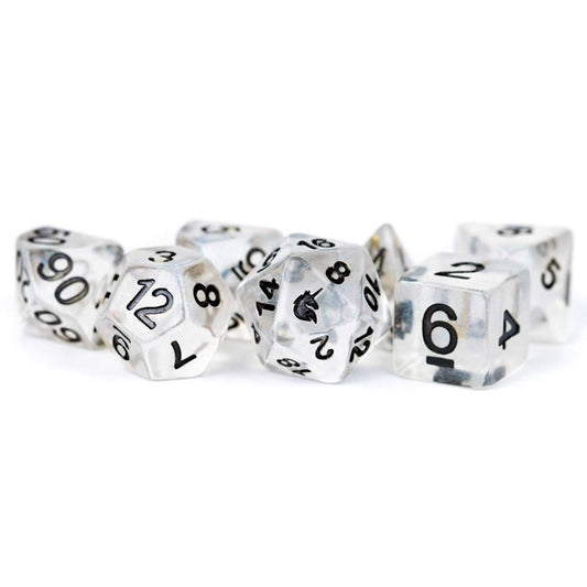 MET701 Unicorn Ice Dice with Black Numbers Resin 7 Dice Set