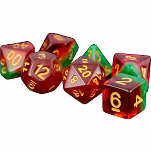MET615 Watermelon Dice with Gold Numbers 16mm (5/8in) Acrylic 7 Dice Set
