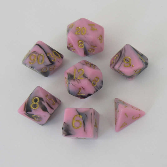 MET173 Pink and Black Resin Dice Gold Numbers 16mm (5/8in) 7-Dice Set
