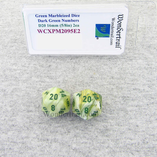 WCXPM2095E2 Green Marble Dice Dark Green Numbers D20 16mm Pack of 2