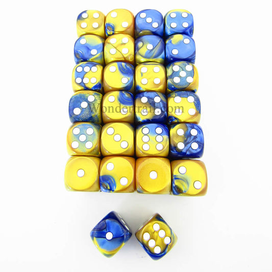 WCXDG1622E50 Blue Gold Gemini Dice White Pips D6 16mm Pack of 50