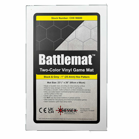 CHX96680 Reversible Battlemat Black and Grey with 1in Hexes (23 1/2 x 26 inches) Chessex