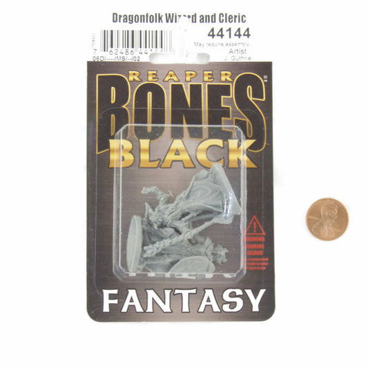 RPR44144 Dragonfolk Wizard and Cleric Miniature 25mm Heroic Scale Figure Bones Black