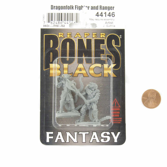 RPR44146 Dragonfolk Fighter and Ranger Miniature 25mm Heroic Scale Figure Bones Black