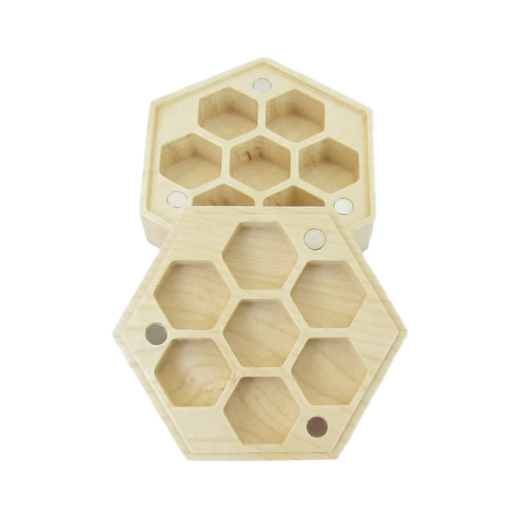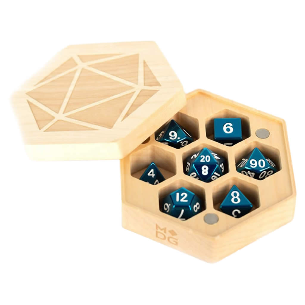 MET808 Maple Wood Hexagon Dice Case Holds 7 Dice Metallic Dice Games