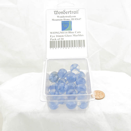 WONGM114 Blue Cats Eye 16mm Glass Marbles Pack of 20