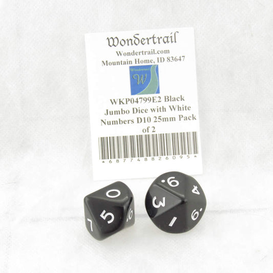 WKP04799E2 Black Jumbo Dice with White Numbers D10 25mm Pack of 2