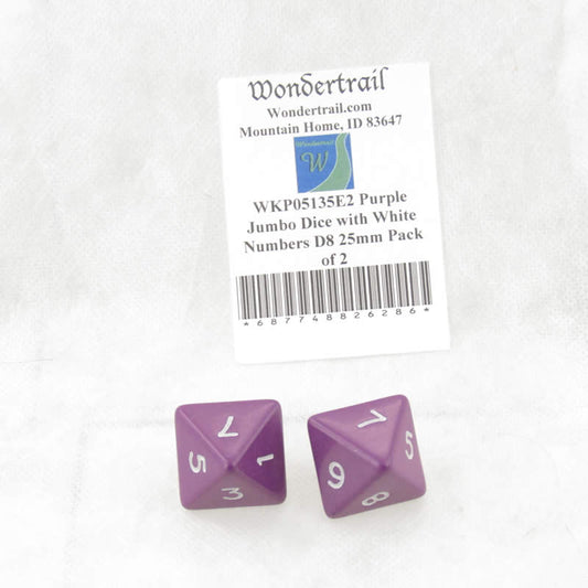 WKP05135E2 Purple Jumbo Dice with White Numbers D8 25mm Pack of 2