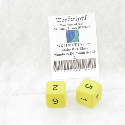 WKP13037E2 Yellow Jumbo Dice Black Numbers D6 25mm Set of 2