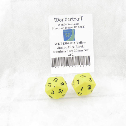 WKP13041E2 Yellow Jumbo Dice Black Numbers D20 30mm Set of 2