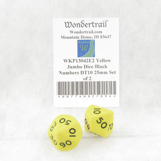 WKP13039E2 Yellow Jumbo Dice Black Numbers D10 25mm Set of 2