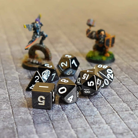 MET018 Black Metal Dice with Copper Collored Numbers 16mm (5/8in) 7-Dice Set Metallic Dice Games