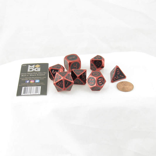 MET024 Red and Black Metal Dice Red Digital Numbers 16mm (5/8in) 7-Dice Set