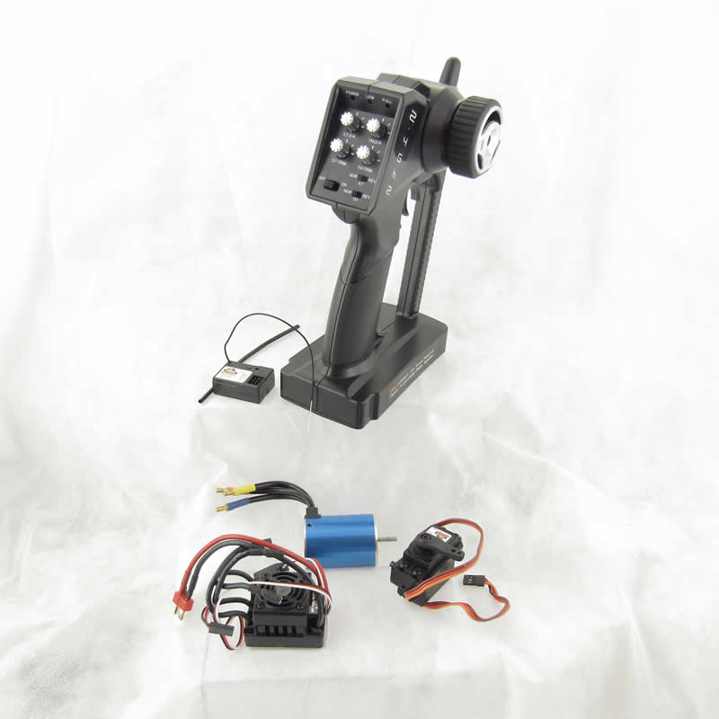 RC kit offers a 2.4Gz transmitter, receiver, brushless 3970kv motor, 50 amp waterproof brushless ESC and a standard servo conveniently packed in a single box.