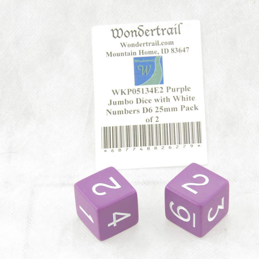 WKP05134E2 Purple Jumbo Dice with White Numbers D6 25mm Pack of 2