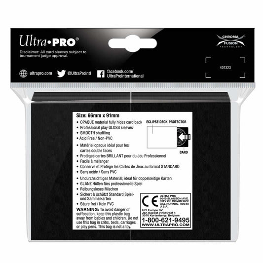 UPR15601 Jet Black Gloss Standard Sleeves 66mm x 91mm 100-sleeves Single Pack Eclipse