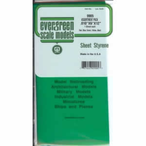 EVG9905 Assorted Transparent Styrene Sheets 5 Color Pk .010x6x12 Inches Evergreen